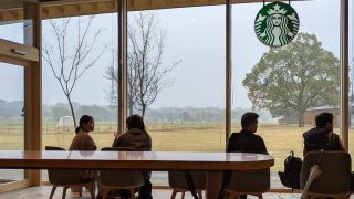 店内から見るキャンプ場